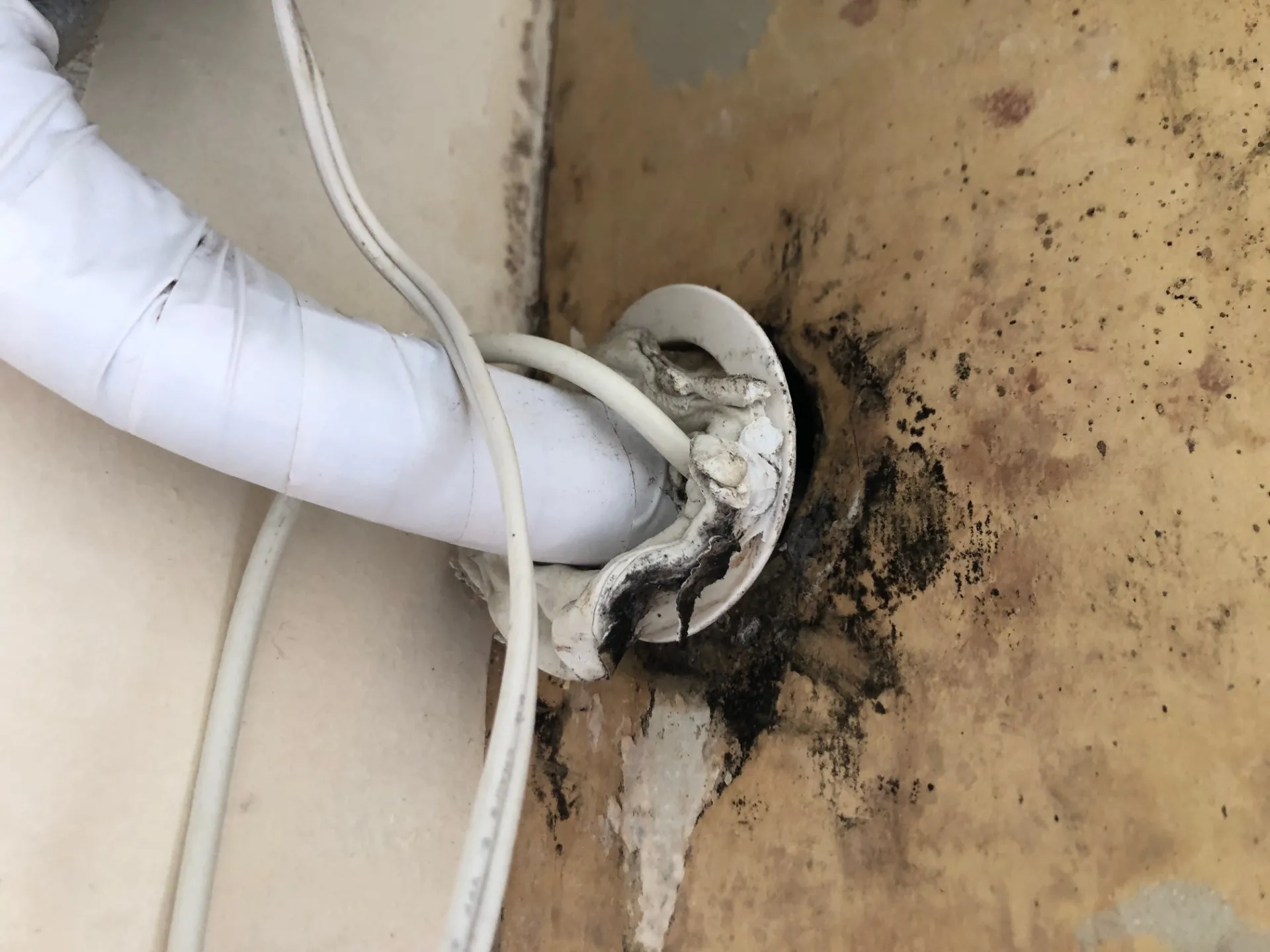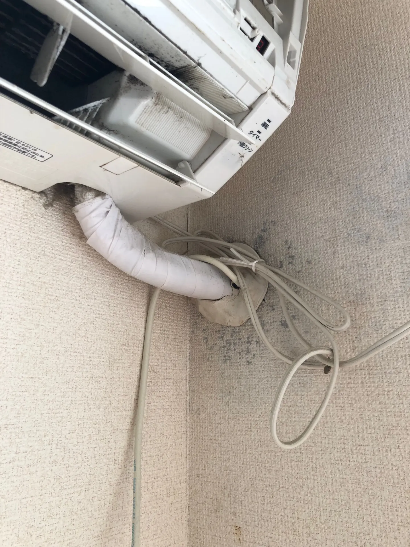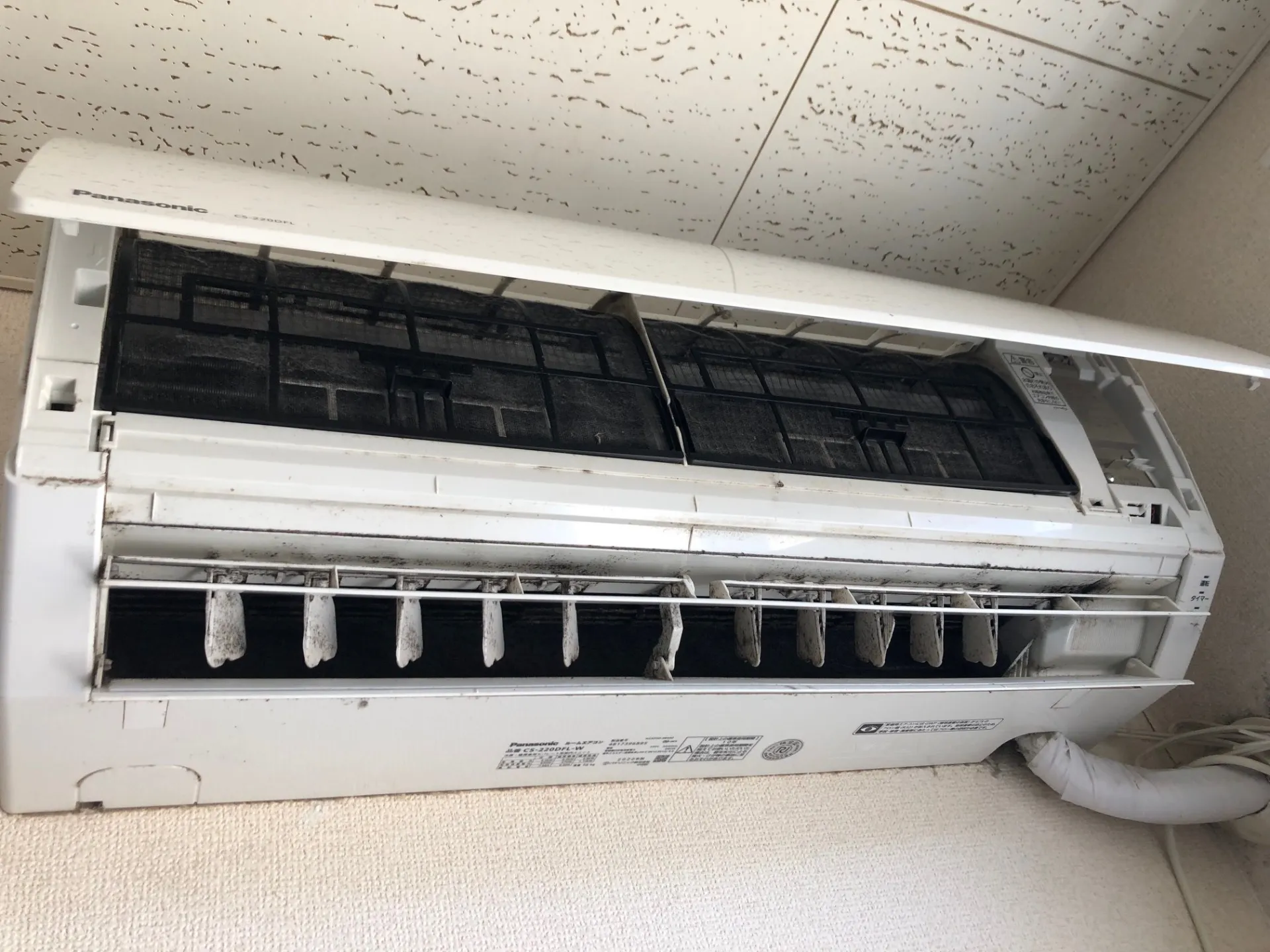 エアコン内部は埃とカビで本体の白い部分が見えない状態でした。