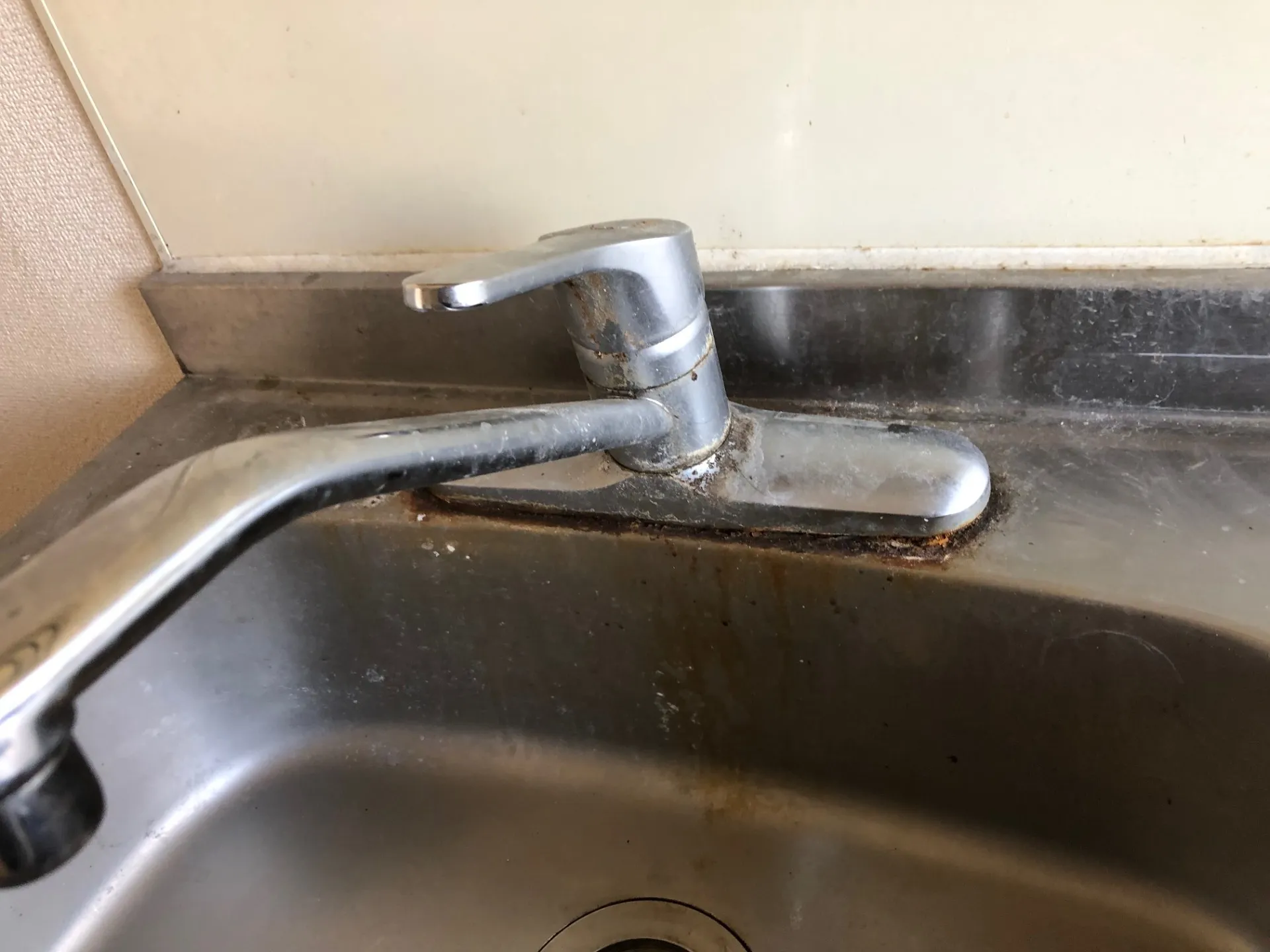 シンク廻りですが、蓄積された埃や水垢、特に酷かったのは写真